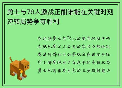 上一篇:勇士与76人激战正酣谁能在关键时刻逆转局势争夺胜利